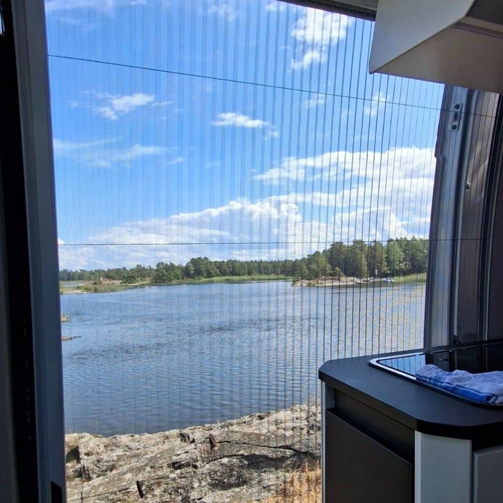 Bij droog weer gaan we zéker buiten werken en snuiven we extra inspiratie op tijdens onze middagwandeling. Bij slecht weer blijven we gezellig binnen zitten in Dobby, waar ik het lekker warm kan maken. Het weer mag ons niet tegenhouden. Integendeel, ritmische regen op het dak maakt onze contentbubbel alleen maar magischer. Alleen als het sneeuwt en/of vriest, kom ik niet buiten met Dobby. Dat zou hij niet overleven, vrees ik.